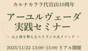 おかげさまで、Karunakarala Ayurveda Group の代官山サロンは10周年を迎えることができました。 日頃から支えてくださる皆さまに、心より感謝申し上げます。 この節目を記念し、特別なセミナーを開催いたします✨ ━━━━━━━━━━━━━━ 【代官山サロン10周年記念】 アーユルヴェーダ実践セミナー 〜心と体を整えるスリランカ式メソッド〜 スリランカ・コロンボ大学アーユルヴェーダ学部長 カマル教授来日 ━━━━━━━━━━━━━━ アーユルヴェーダって難しそう? いいえ、実は毎日の暮らしで すぐに使える実践的な知恵なんです。 今回は”知識”より”実践”。 明日から使えるメソッドをお伝えします 【セミナー概要】 2025年11月22日(土)13:00〜15:00